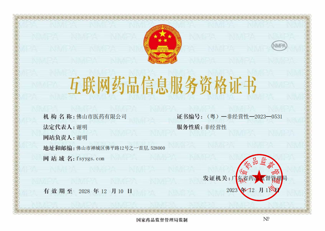 互聯(lián)網(wǎng)藥品信息服務(wù)資格證書:【(粵)一非經(jīng)營性一2023一0531】